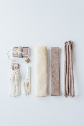 - 掛下、箱せこ・懐剣セット、刺繍半襟、帯などの色遊びを楽しみたい方は、オプションより小物をお選び下さい。